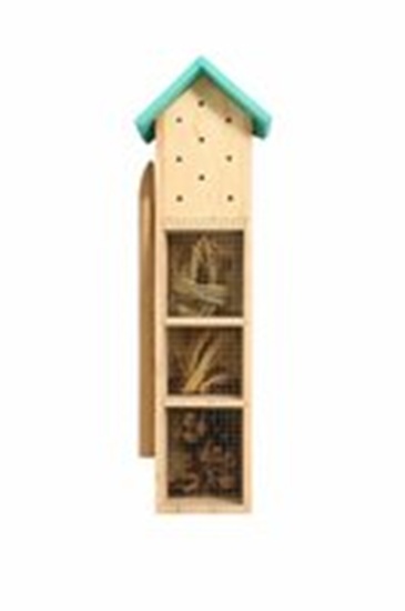 Geef bijen, lieveheersbeestjes en andere nuttige insecten een veilige en verhoogde plek met dit houten insectenhotel op paal. Het insectenhotel is gevuld met diverse natuurlijke materialen zoals bamboe en hout, speciaal ontworpen om verschillende insectensoorten te huisvesten.