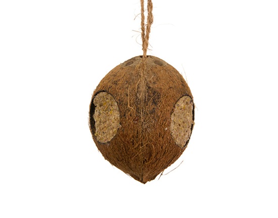 Verras je tuinvogels met een ware tropische verleiding: de kokosnoot gevuld met vet!
