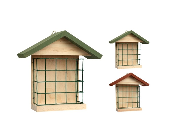 De vetblokhouder is gemaakt van duurzaam hout en past dankzij de natuurlijke uitstraling perfect in iedere tuin. Door het open ontwerp kunnen meerdere vogels tegelijk eten en hebben ze goed zicht op hun omgeving. De houder is eenvoudig te vullen en gemakkelijk op te hangen aan een boom, schutting of pergola.
